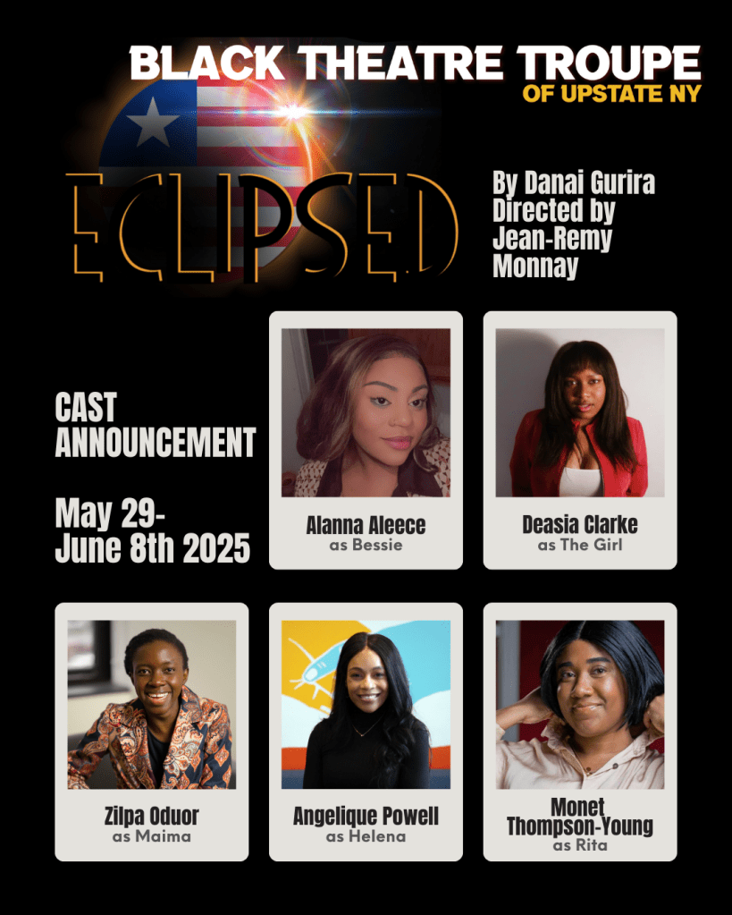 In May 2025, I made my theater debut as Maima in The Black Theater Troupe of Upstate NY’s production of ECLIPSED by Danai Gurira. Before then, I had never acted before. At least not in my teen or adult years. The last time I got on stage to act was during school assemblies or end-of-year prize-giving ceremonies over 16 years ago. Embarking on this new journey gave me a newfound respect for stage actors, but also a profound look into how theater can be used to educate and move people in a way that is different from other mediums such as film, studio art, or music.